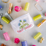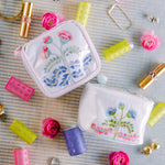 This satin-lined and trimmed embroidered jewelry box is perfect for storing your most valuable and sentimental accessories. Designed with treated pique fabric for stain resistance, it features a zipper closure with a satin pom-pom tassel, ensuring your treasured pieces stay secure and stylishly stored.