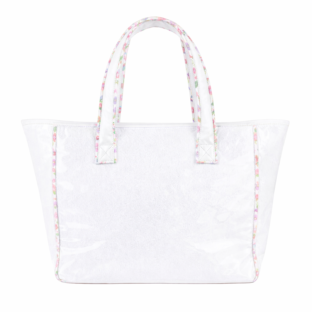 Designed for effortless everyday use, the Terry Tote Bag combines luxurious softness with practicality. Made from plush terry cloth, piped in your choice of our signature pink or lavender blossom floral, and wrapped in a stain-resistant coating, this tote is perfect for travel, beach days, or running errands. Its spacious interior ensures room for all your essentials while keeping them protected.